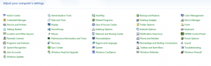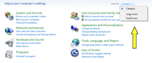 the options are displayed, so by clicking on the drop menu we’ll selected either Large or Small Icons both are identical just the size of the icons is the difference. From there you’ll end up with a complete list of options instead of categories, personally I find it much easier to find stuff this way.