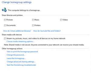 When you connect to a network Windows will want to know what type of network it is? This might happen a lot especially if you’re using a wireless device and hotspots. You’ll be presented with options like Home Network, Work Network and Public Network. The Home and Work Networks are to be used only in these types of networks and assumes that computers on these networks are trust worthy and will provide you quick sharing capabilities among them. The HomeGroup is where you come to tell Windows what you’d like to share with these computers, not only can you specify what folders you’d like to share but you can also password protect them here as well. This way anyone trying to connect to your computer will need to know the password in order to see your files. With windows you can share any folder you’d like too but this could lead into security issues so it’s best to only allow shares to your personal folders if you’re going to allow it, these are pictures, documents, music, printers and video that is mostly located under the libraries folder.