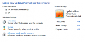 Windows offers some parental controls without third party software, this can only be applied to user accounts that are not setup as Administrators otherwise they’ll be able to change these settings. Here you can control things like what times a particular user can use the computer from. You can also specify here what programs they are allowed to use by manually selecting the allowed and disallowed programs or based on a certain rating that’s typically associated with games and not software.
