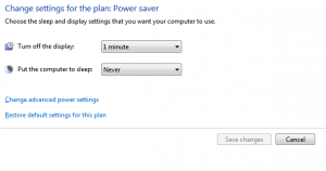 This option is mainly useful when using a mobile device as there are two different settings that will apply to it one when there’s power hooked up to the unit and one when it’s running off the battery. You might also have the option here for what happens when you close the lid on your laptop, if you’re using your laptop to hook up to a big screen or TV then you might like to close the lid without putting the computer to sleep so that you’re not wasting your displays lifespan while watching something on the TV. The basic use of this option is to put your computer and monitor to sleep after a certain amount of idle time. This used with screensaver options can lock your computer if it’s not used for a certain amount of time, hopefully saving you from someone accessing your computer should you just get up and leave kind of thing.