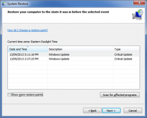 If you’re experiencing trouble with Windows this area could help you out, depending on the problem. Some programs that you are running might appear under the Troubleshoot a problem option where Windows will try to run some wizards to try to diagnose and repair issues found. If you’ve noticed these problems started after installing software, getting an update or something like that then there’s a chance you can fix this by using System Restore. Windows automatically creates restore points when installing/updating your Operating System. You can jump back to this point in time using the Open System Restore button, which will present you with a dialog box where you can choose from saved points, by checking off the Show more restore points you’ll be able to see all of them. You can also manually specify to create a restore point should you feel the need to do so.