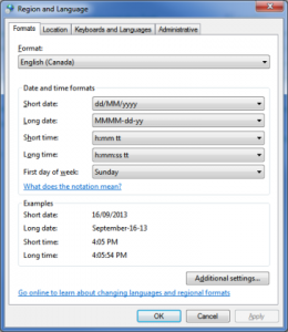 Region and Language is where you come to tell Windows what language you are using and where you are located, this will affect other settings like the clock for example or the default dictionary inside of Word. You can also come here to specify how your dates and times are to look when being displayed in either short or long format. If you have different language keyboards or use multiple ones and want to switch back and forth between them then you’ll need to specify the keyboards here as well, afterwards a shortcut on your taskbar will be displayed if you have more than one option, this way you can easily switch between them.