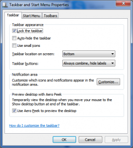 This option is described in more detail through another tutorial but here you can set the options for what your Start menu will look like along with other options for your taskbar and notifications area. Because Windows puts shortcuts in so many places you’ll find options overlapping in all sorts of places, I think it’s nice but some find it intimidating because they’re afraid to click on the options.
