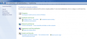 The Troubleshooting option will give you a menu of options to choose form that are grouped into categories. If you are experiencing troubles with your computer this is a good place to start. Depending on your selection here Windows will present you with dialog boxes, simple questions if there are any and then a diagnosis or an attempt on automatic repair will be made. You can also run programs here that were intended for previous versions of Windows.